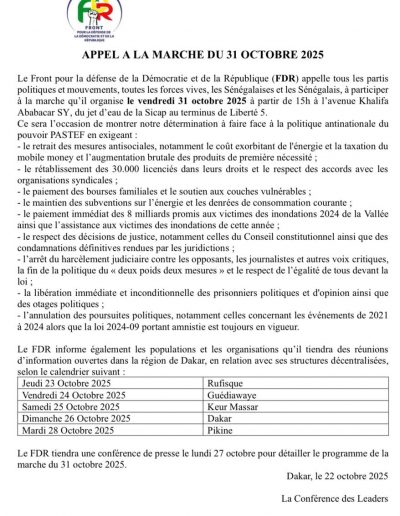 La Convergence des Cadres Républicains (CCR), s’est réunie, à l’effet d’examiner la situation politique nationale.De prime abord, la CCR salue la saisine officielle par le pool d’avocats du Président Macky Sall, via deux correspondances du Ministre des Finances et du...