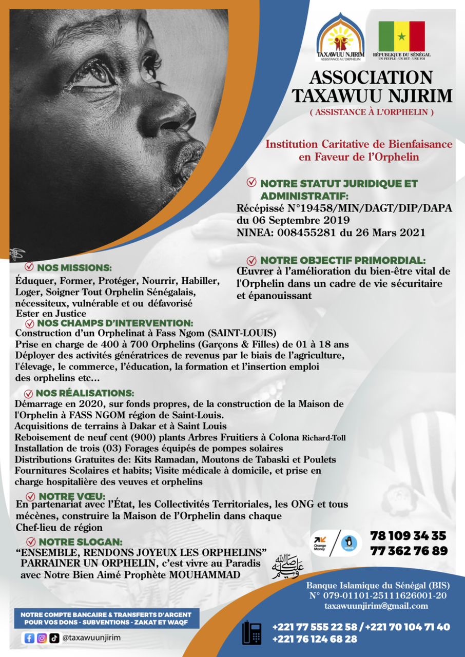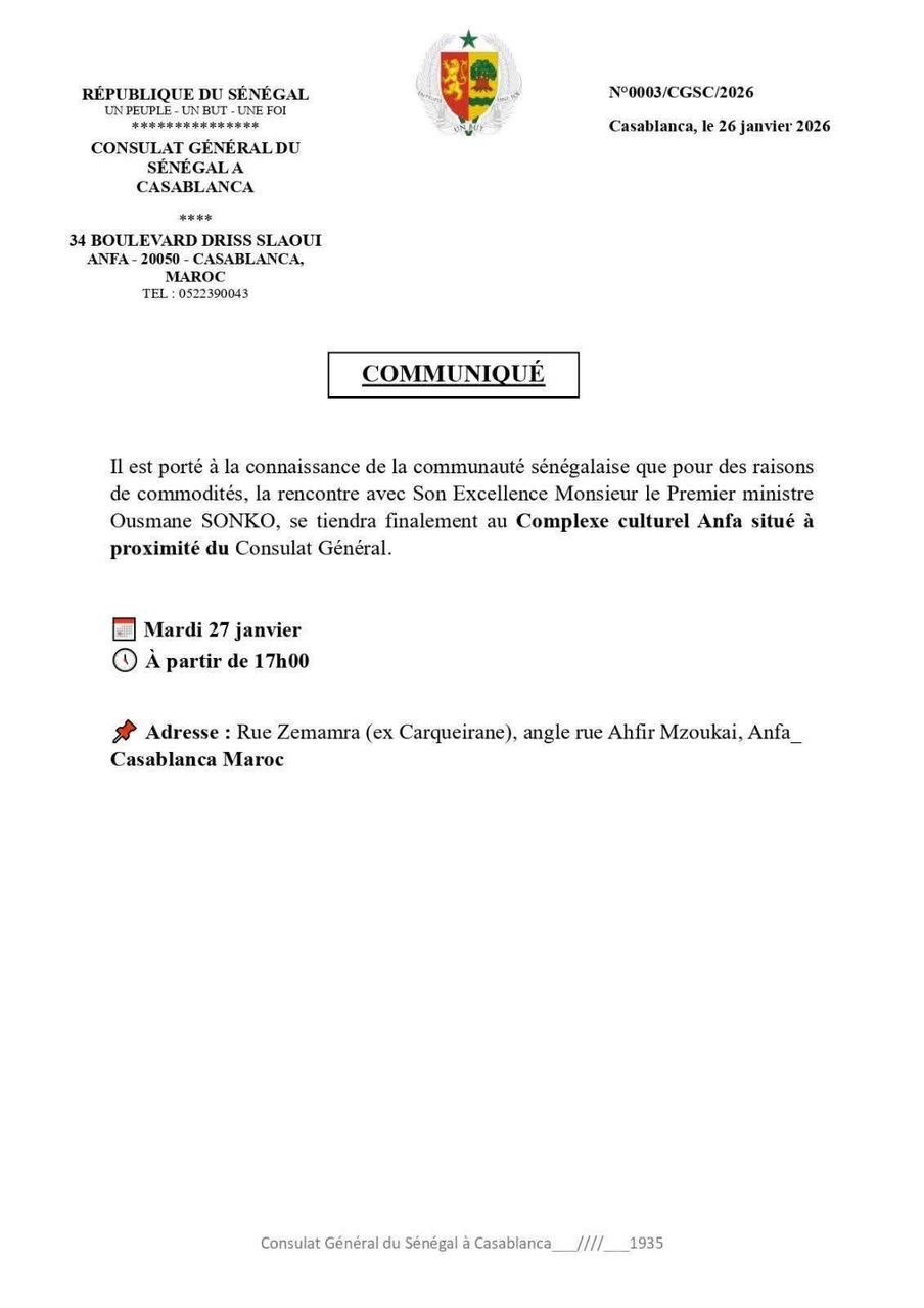 Levée de corps demain jeudi à 10h à la grande mosquée de mermoz ( imam Diabel Ndiaye) enterrement aux cimetières de Yoff.Condoléances chez lui fenêtre mermoz n’ 69.