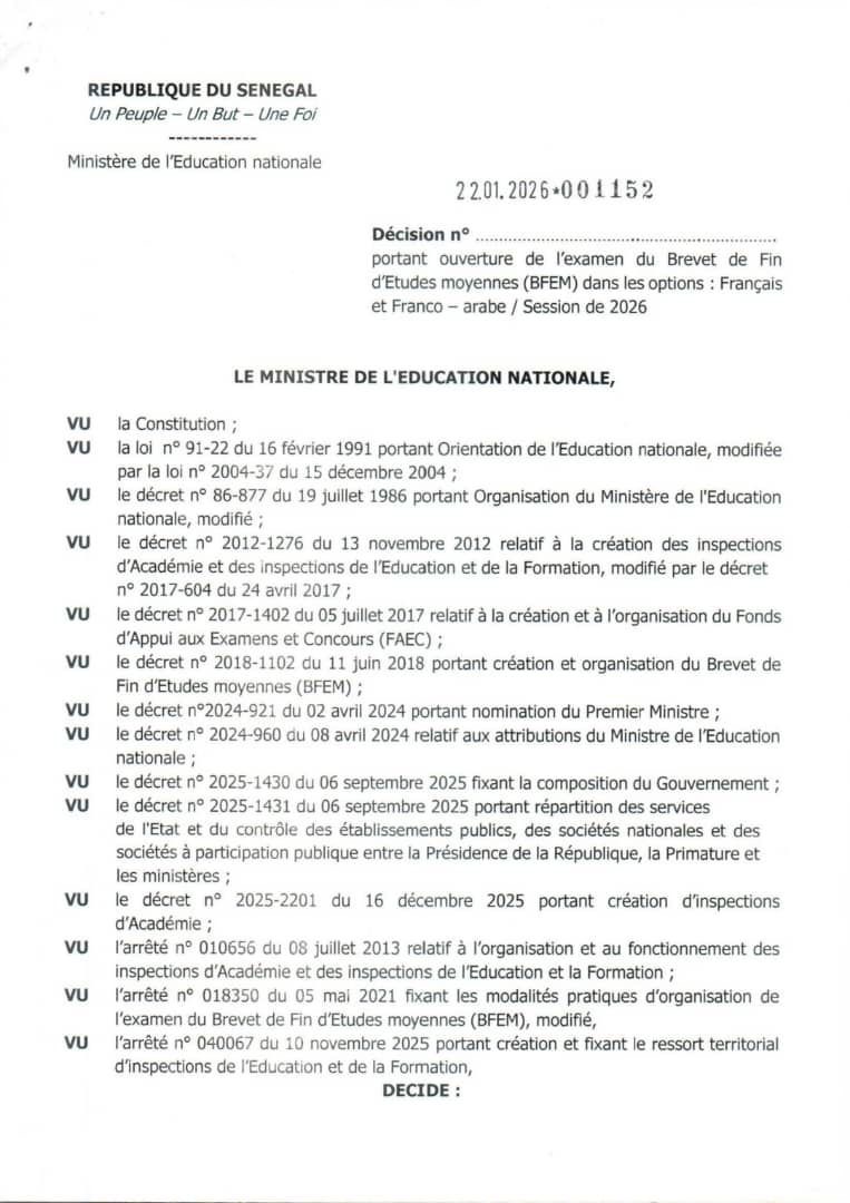 Dakar, jeudi 15 janvier 2026. Monsieur le Ministre des Forces armées, Mesdames et Messieurs, Chers auditeurs, Je voudrais, à l’entame de mes propos, vous souhaiter à toutes et à tous, la bienvenue à cette cérémonie solennelle marquant la rentrée académique du Centre...