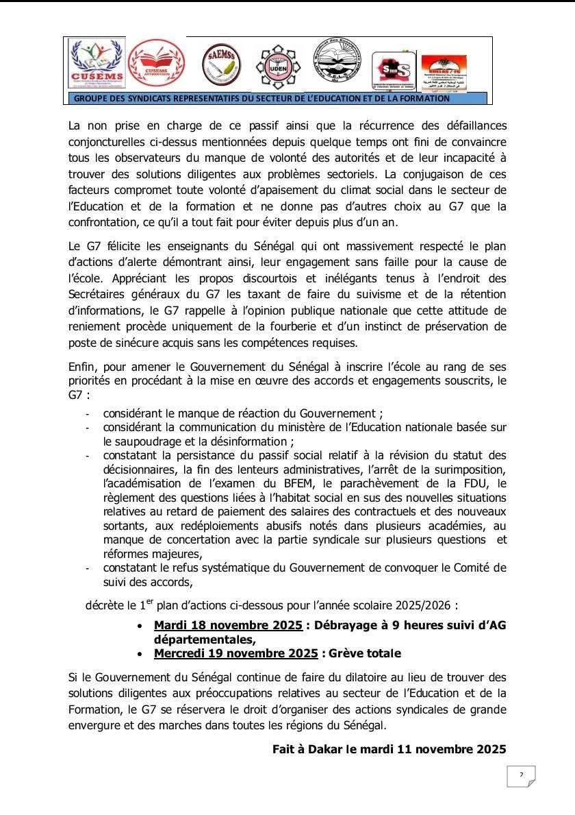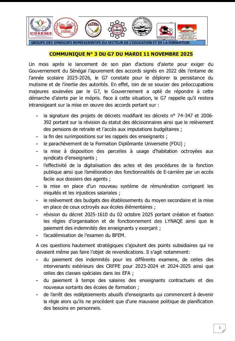 RÉSOLUTION GÉNÉRALELe 06 Novembre 2025, à 17 jours du 17e Anniversaire de la naissance de notre Parti, le Secrétariat Exécutif National de l’Alliance Pour la République, nouvellement installé, s’est réuni au Siège National de l’Alliance Pour la République (APR).Cette séquence majeure de la vie de notre Parti, initiée par le Président Macky Sall, Président de l’Alliance Pour la République, a mobilisé près d’un millier de Responsables venant de tous les Départements du pays, et de la Diaspora.Après un hommage appuyé, rendu à nos vaillants et dévoués camarades, aujourd’hui disparus, la rencontre a été ouverte par un brillant Message du Président Macky Sall, Président du Parti, lu par le camarade Mahmoud Saleh.Dans son Message, le Président Macky Sall a rappelé les dispositions statutaires qui encadrent et dégagent la substance du SEN. Ensuite, de manière magistrale, il a dégagé la Ligne d’orientation politique de notre Parti, dans un contexte national, sous- régional, continental et mondial, d’une extrême complexité.Il a mis l’accent sur les difficultés économiques et sociales, non sans rappeler, avec force, la brutalité et la violence que le pouvoir exerce sur l’Opposition, en général, sur les Mouvements Citoyens, et, particulièrement, sur notre Parti. Enfin, dans ce Message d’une forte tonalité politique et militante, le Président Macky Sall en appelle au retour à nos » Traditions gagnantes », celles forgées dans les batailles politiques et socles de notre identité collective.A ce titre, il a insisté sur l’exigence d’unité dans nos rangs, sur la convivialité et la franche camaraderie.Son appel à élever notre niveau d’engagement politique à la hauteur des impératifs du moment politique en cours, lui a permis de réaffirmer l’ancrage de l’Alliance Pour la République, dans le puissant Bloc Politique et Citoyen national, dont il a salué la mobilisation permanente et irrépressible.Ce Message, d’une haute densité politique, a été singulièrement salué et apprécié par le SEN qui, debout et à l’unanimité, a exprimé sa totale adhésion aux points de vue politiques et aux recommandations du Président Macky Sall, Président de notre Parti.Prenant appui sur cet exceptionnel Message traduit en Langue Nationale, par la camarade Aissatou Ndiaye, le SEN a approuvé la Motion par laquelle, à travers la Camarade Néné Fatoumata Tall, apporte son Soutien sans faille au Président Macky Sall, Président du Parti.Par ailleurs, de manière claire et sans équivoque, le SEN a dénoncé, avec force, la terreur que le pouvoir fasciste exerce sur les Organisations politiques et sur toute la société. Ce mode de présence et d’action politiques inacceptables, expressif d’une incompétence et d’une violence bestiale, est une motivation au combat démocratique et républicain.C’est ce que la Motion lue par le camarade Abdoulaye Diagne a exposé et formulé, pour déboucher sur la nécessité historique d’une unité de l’Opposition pour vaincre le pouvoir.En outre, c’est peu de dire que le Sénégal traverse une grave crise économique et sociale.Comme l’a rappelé et démontré la Motion lue par la camarade Marième Thiam Babou, le Sénégal est au fond des abîmes et traverse l’une des périodes les plus sombres de son histoire. Pour expliquer sa faillite et son incurie, le pouvoir convoque une mensongère » Dette cachée « , tout en refusant de dévoiler les » Rapports cachés » qui le confondraient et révèleraient le niveau de gravité de ses mensonges.Au Sénégal, rien ne marche. Tout est à terre, Tout bascule, Tout périclite!Au moment où l’économie est étranglée, la société étouffe. Tout est cher, le chômage explose, l’angoisse et le doute envahissent les familles.Une telle situation aussi grave que triste, est attestée par le désastre vécu par nos Localités et que la Motion lue par le camarade Abou LO, a brillamment mis en exergue, non sans rappeler, les brillants résultats engrangés par nos Territoires durant les Mandats du Président Macky Sall !