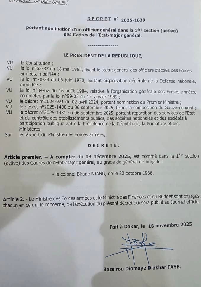 Dakar, le 26 novembre 2025 Le Sénégal vit des moments difficiles et complexes qui nous interpellent tous et nécessitent une prise de conscience collective et une attitude courageuse et responsable de la part de chaque sénégalais, particulièrement nos représentants au...