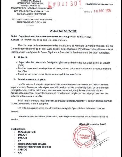 Dakar, le 26 décembre 2025 Le Syndicat des Travailleurs de La Poste (SYTPOSTE) informe l’opinion publique nationale et internationale que le protocole d’accord relatif à la mise en œuvre du Plan de Départ Volontaire Négocié (PDVN) a été signé ce jour entre la...