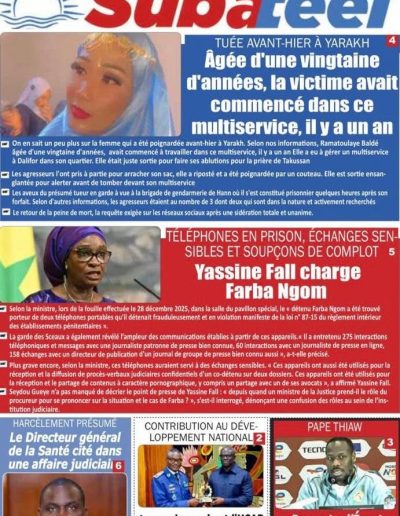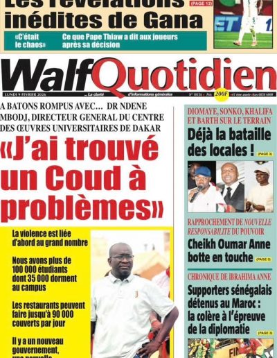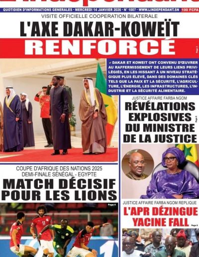 Levée de corps demain jeudi à 10h à la grande mosquée de mermoz ( imam Diabel Ndiaye) enterrement aux cimetières de Yoff.Condoléances chez lui fenêtre mermoz n’ 69.