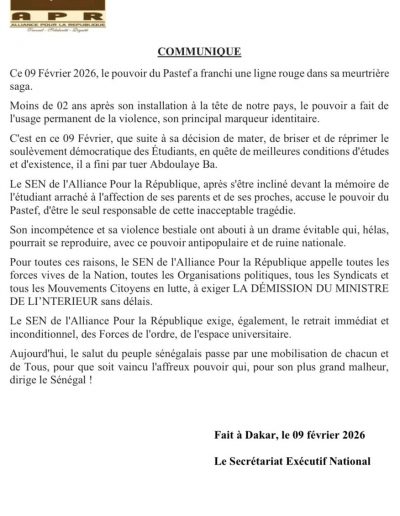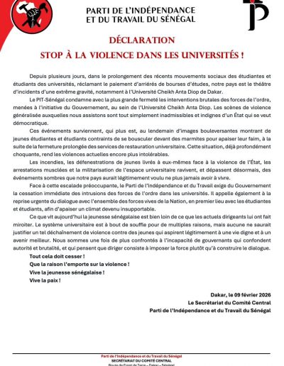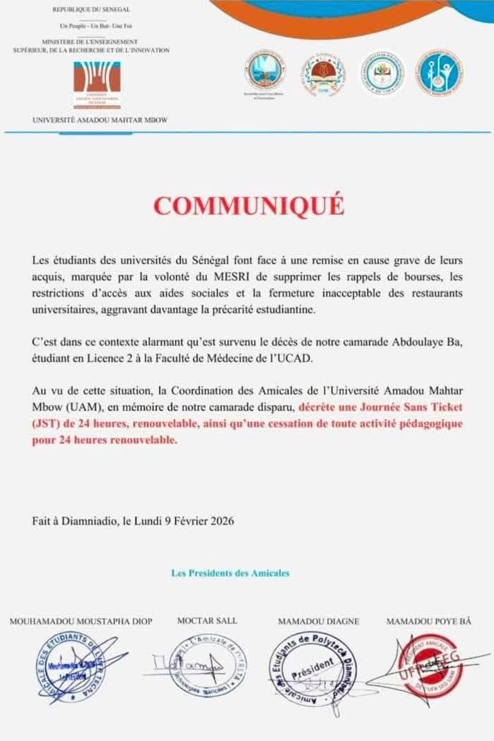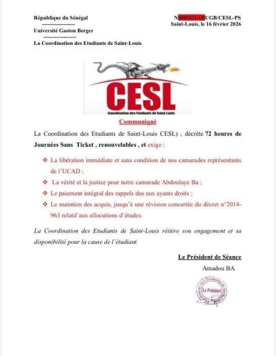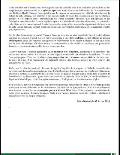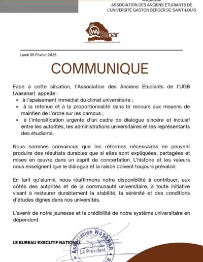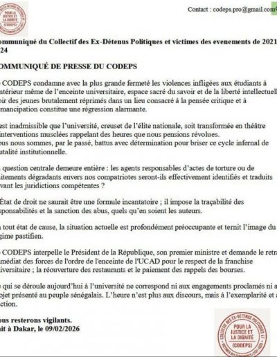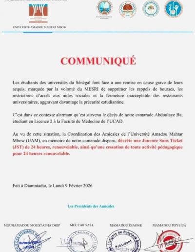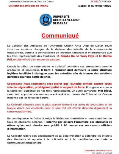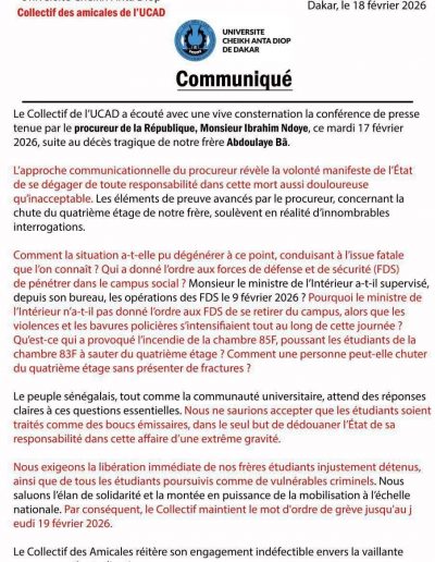 Dakar, le 26 janvier 2026 Le CCUAP déplore les nombreux accidents de circulation et appelle l’État à des mesures urgentes pour protéger la vie des usagers. Le Collectif Citoyen des Usagers des Aménagements Publics et Privés (CCUAP) exprime sa profonde consternation et...