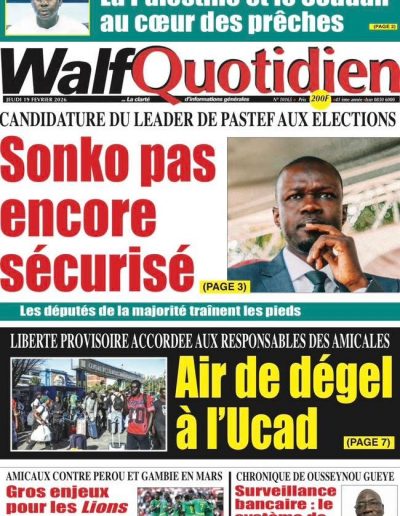 .La tournée du Ministre de l’Éducation dans les cités religieuses, en prélude aux assises nationales des daaras, ainsi que les financements accordés, témoignent d'une volonté forte relevant d’un souhait national, qui permettra une meilleure organisation de ces centres...