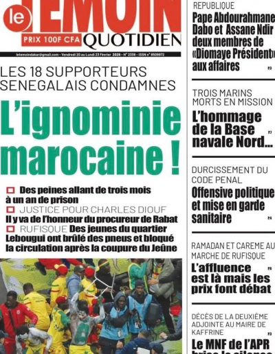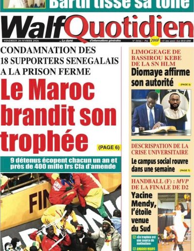 Un trophée « A … larmes » Depuis plusieurs semaines des supporteurs des Lions du Sénégal sacrés Champions d’Afrique au Maroc dorment dans les prisons de Rabat. Dans on ne sait, quelles conditions ? De façon ubuesque, lâche, ils ont été interpellés violemment au stade...